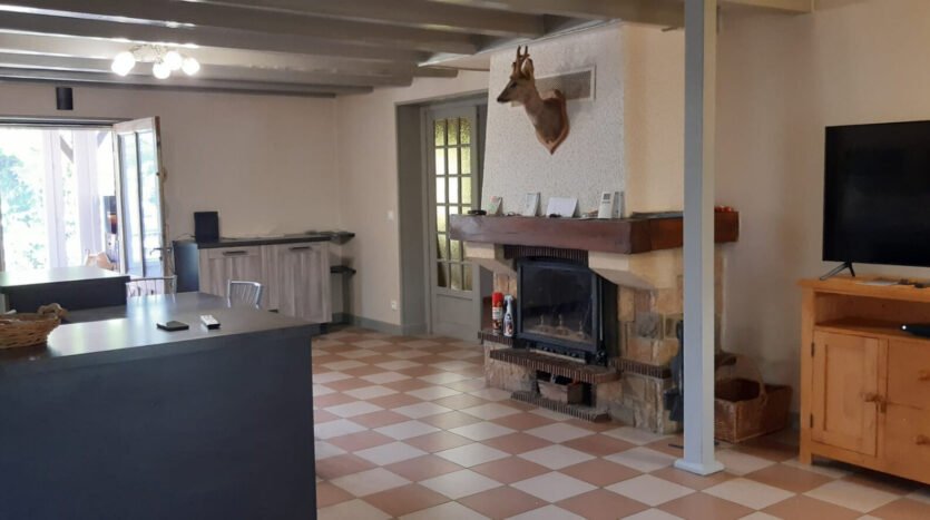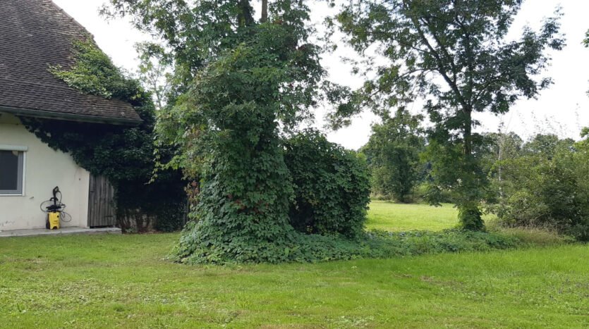 Une dépendance de 50 m2, atelier/garage + grand bûcher attenant à la maison, puits