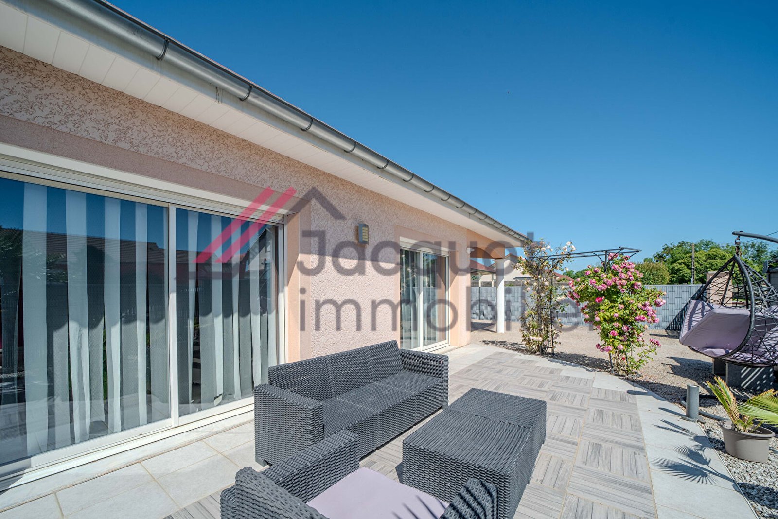 Le terrain de 467m² est entièrement clôturé, avec portail électrique, espace fleuri et piscine hors sol pour profiter pleinement des beaux jours.